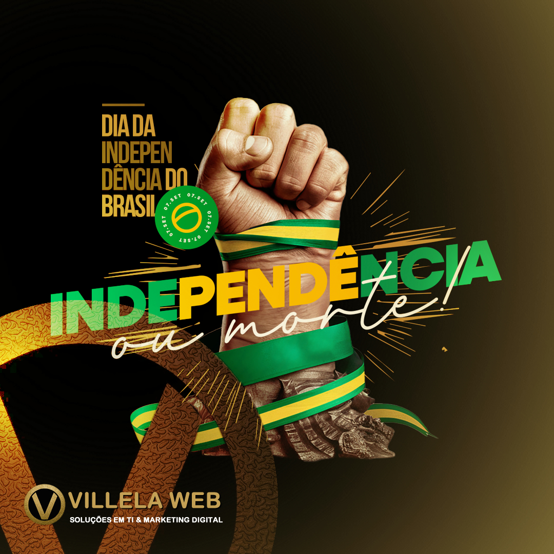 A Villela Web Marketing Digital celebra a Independência do Brasil! 🇧🇷 Neste 7 de setembro, honramos a liberdade e os valores que nos tornam uma nação forte e resiliente. Que possamos seguir crescendo juntos, conectando ideias e impulsionando o futuro digital do nosso país!